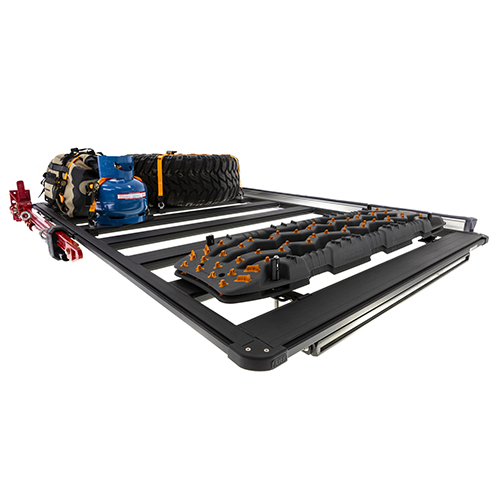 Im Gegensatz zu herkömmlichen Dachträgern sammelt das Schwalbenschwanzprofil des BASE Racks weder Staub noch Schmutz. Jedes Base-Zubehör oder -Einrichtung kann mit einer einfachen Klemmhalterung am Träger befestigt werden, einschließlich größerer Hardware wie Hi-Lift Jack-Halterungen, Rollen, Abschleppbretter und sogar eine Base Rack-Lichtleiste.