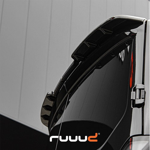 Die Heckspoiler werden aus hartem Polyurethan unter hohem Druck hergestellt. Polyurethan ist ein haltbareres Material als Polyester. Die Heckspoiler werden in eine Form gepresst, die den Spoiler noch stärker macht. Darüber hinaus werden sie auf hohe Temperaturen und aerodynamische Effizienz getestet. Natürlich wird auch der Unterschied zwischen Hecktüren und einer Heckklappe berücksichtigt. Der Heckspoiler für die Klappe läuft über die gesamte Breite des Volkswagen T7 Transporter Electrisch. Der Spoiler für die Hecktüren wird in der Naht der Türen getrennt.